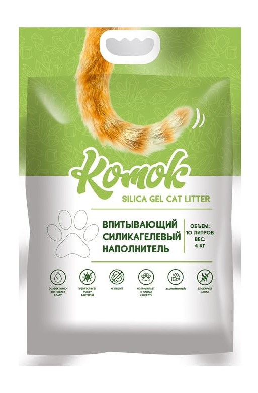 Наполнитель КОМОК Silica Gel Cat Litter - моментально впитывает влагу и уничтожает запахи. Наполнитель нетоксичен и абсолютно безопасен для здоровья кошек и их хозяев. Кристаллы надежно блокируют запах и препятствуют росту бактерий.
