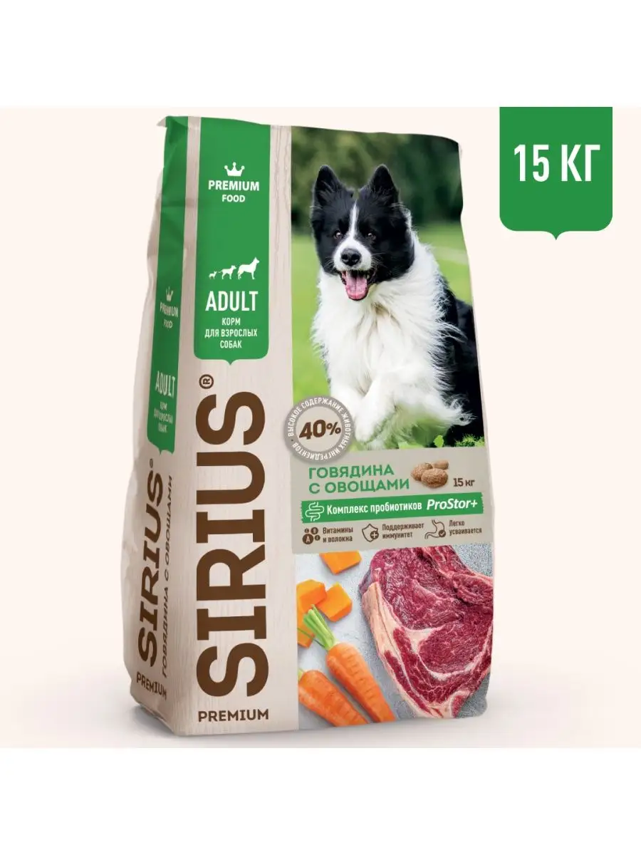 SIRIUS Говядина с овощами для собак всех пород 15кг
