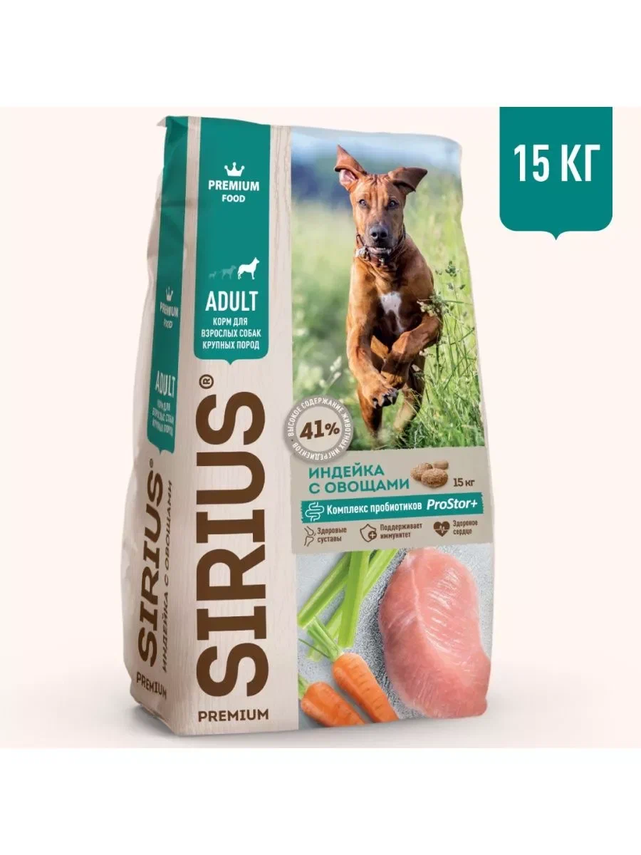 SIRIUS Индейка,овощи для собак крупных пород 15кг
