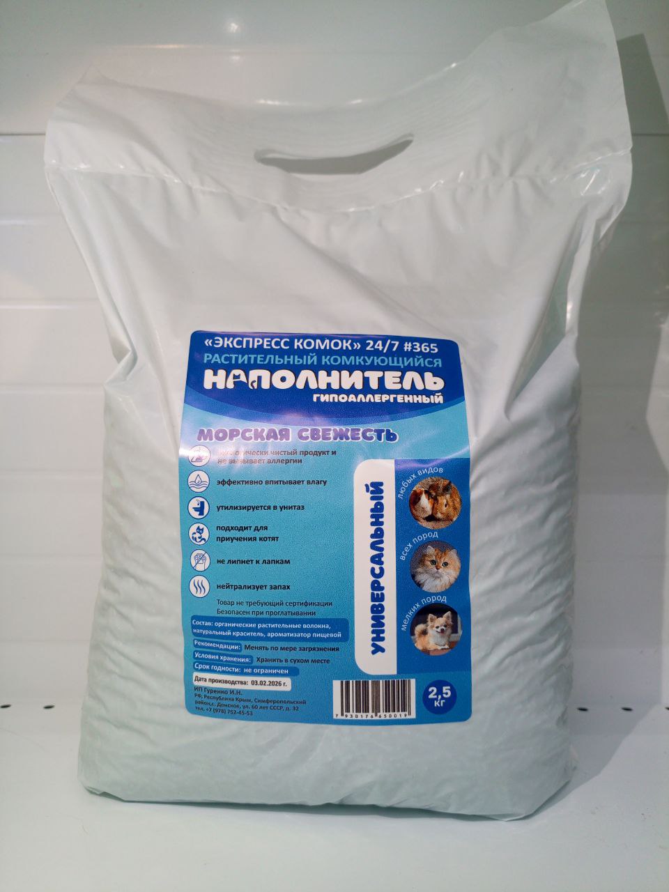 Наполнитель растительный комкующийся Морская свежесть 2,5кг