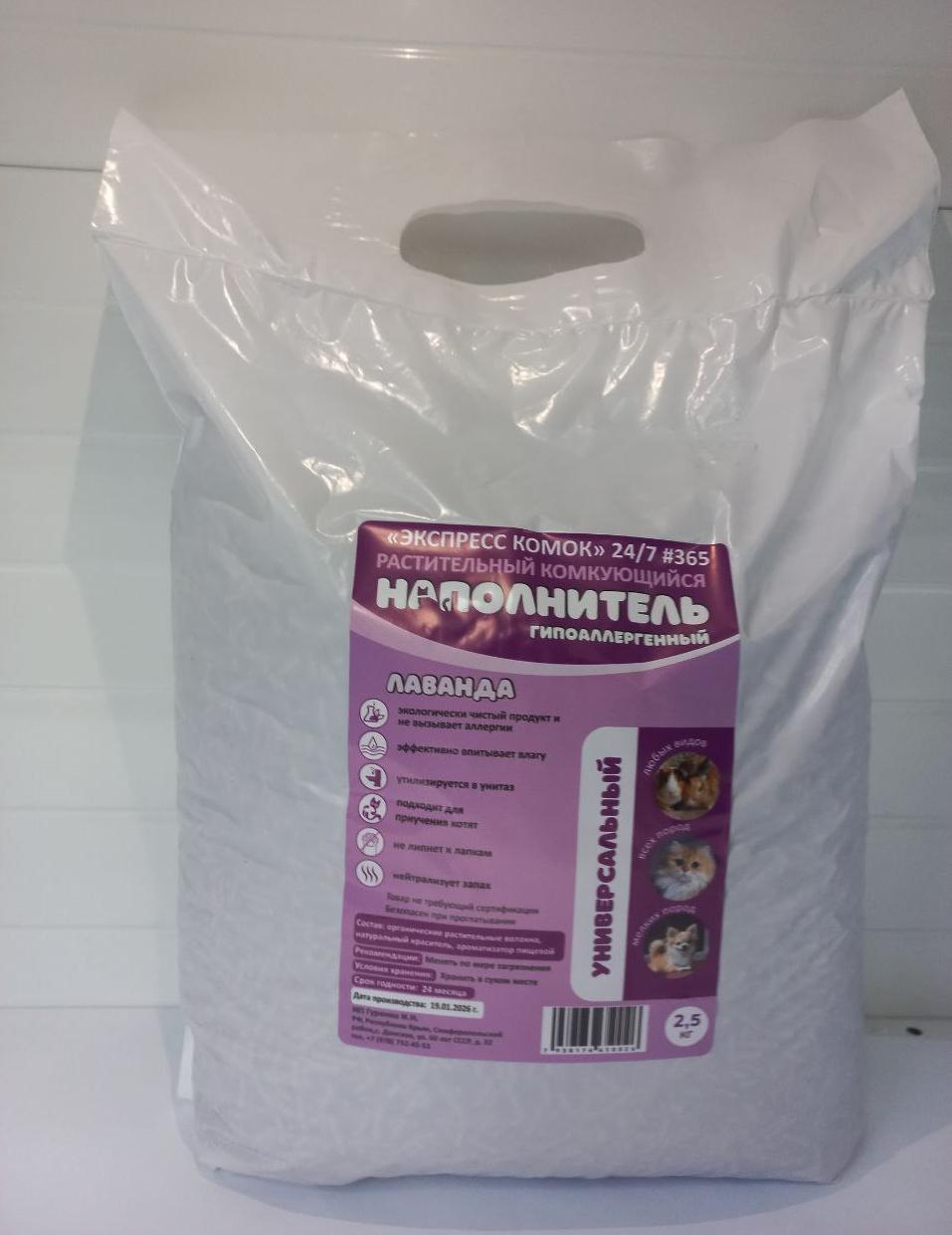 Наполнитель растительный комкующийся Лаванда 2,5кг