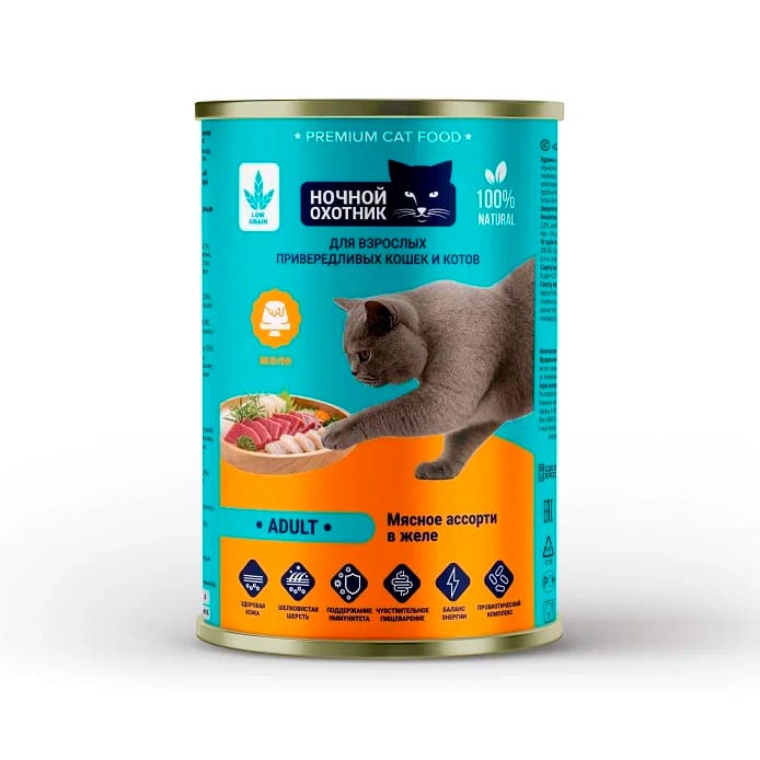 Ночной Охотник Мясное ассорти в желе для привередливых кошек 415г