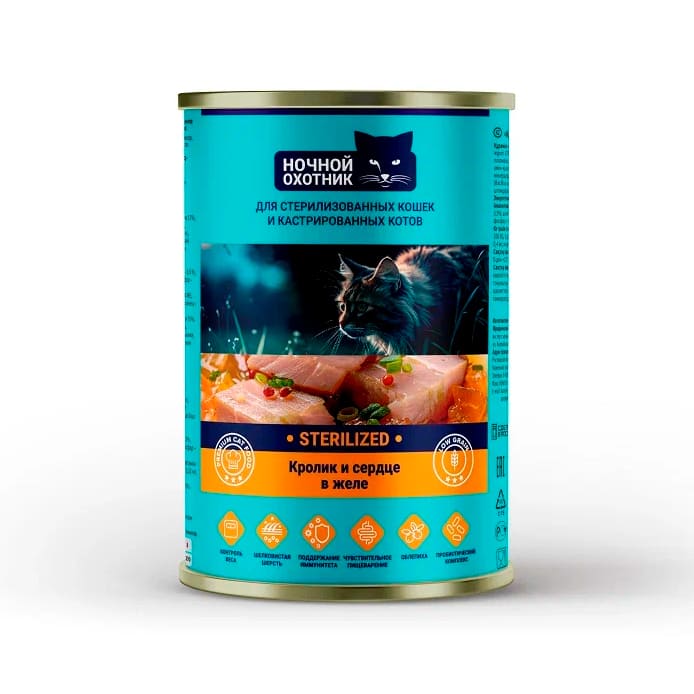 Ночной Охотник Кролик и сердце в желе .для стерилизованных кошек 415г