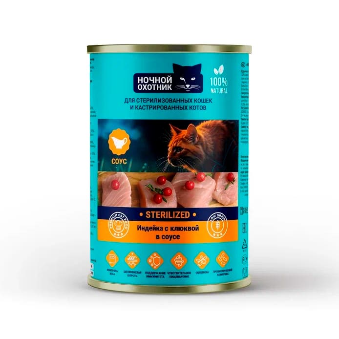 Ночной Охотник Индейка и клюква в соусе для стерилизованных кошек 415г
