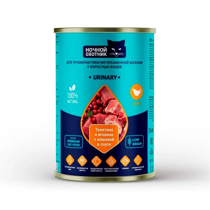 Ночной Охотник Телятина и ягненок в соусе при МКБ у кошек 415г