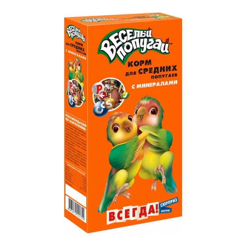 ВЕСЕЛЫЙ ПОПУГАЙ - корм для средних попугаев с минералами (+подарок) 450 г