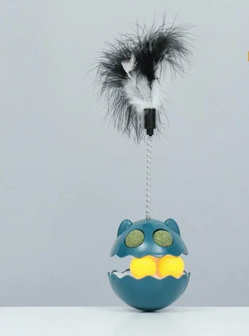 Неваляшка с перьями на пружине с кошачьей мятой 12,3*21см