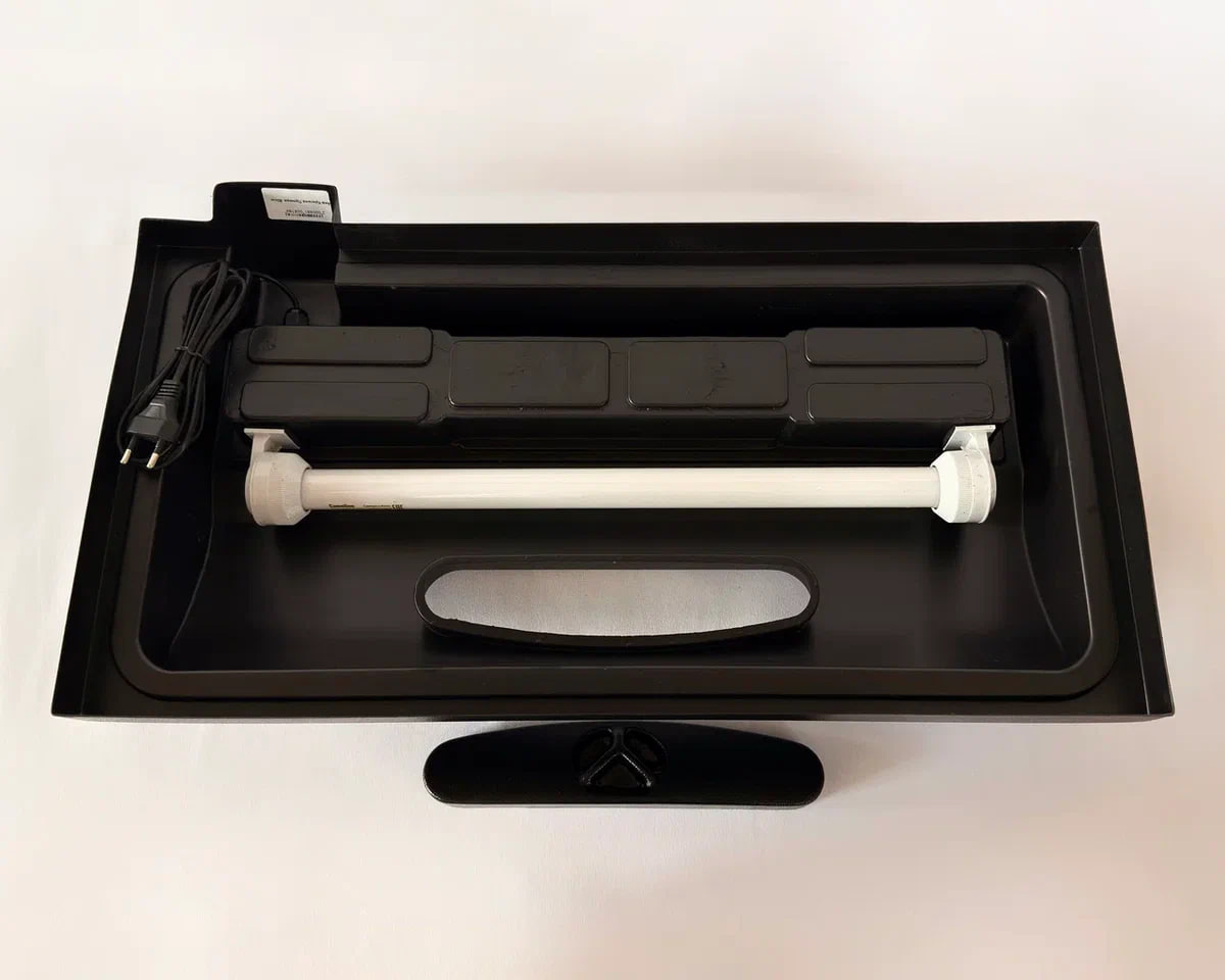 Центральным элементом крышки является люминесцентная лампа.Такая лампа даёт мягкое, равномерное освещение, близкое к естественному дневному свету, что особенно важно для роста аквариумных растений и яркости окраски рыб. Световой спектр подобран так, чтобы подчёркивать зелёные и красные оттенки, создавая живую и уютную атмосферу в аквариуме.