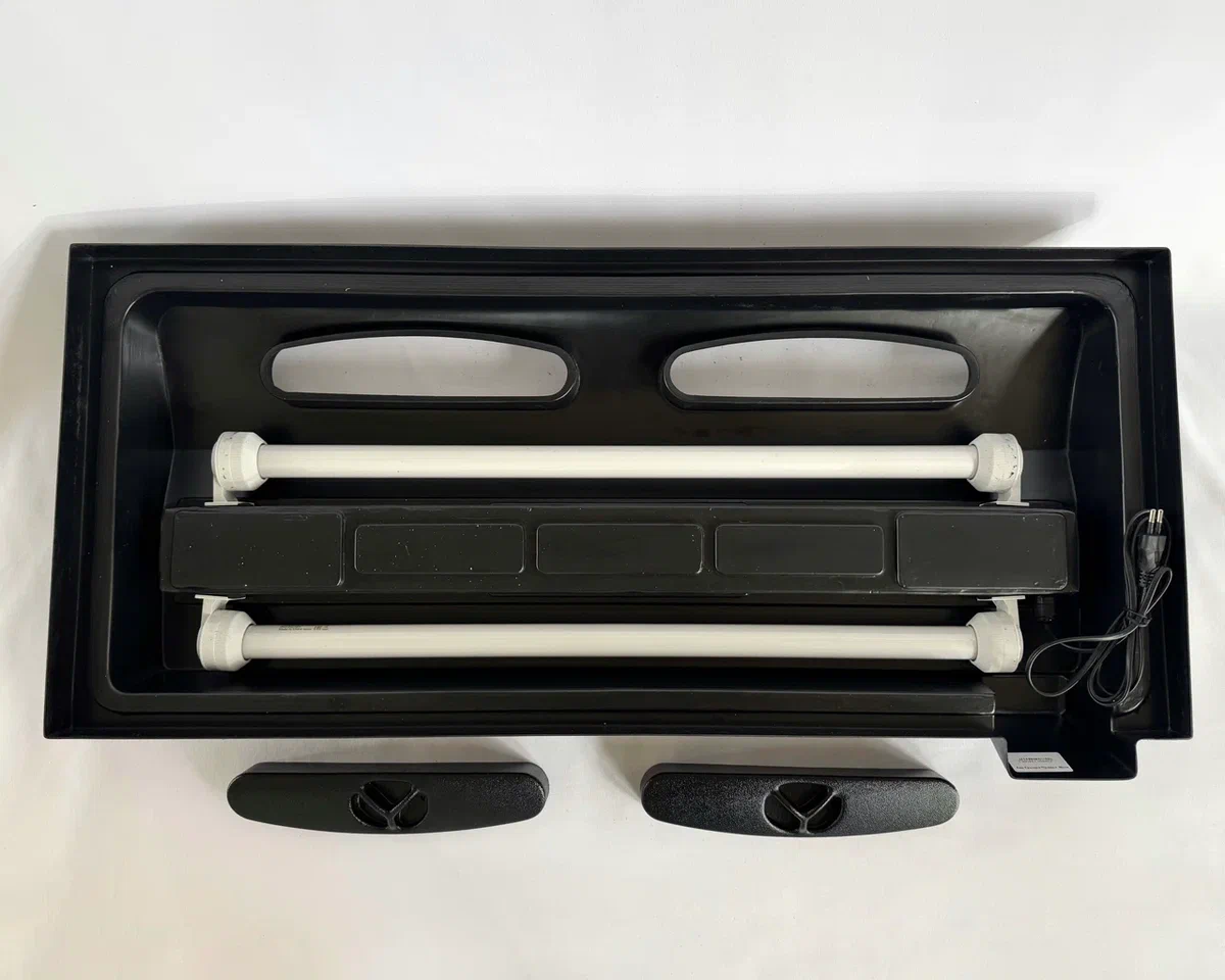 Центральной особенностью крышки являются две люминесцентные лампы Т8, каждая мощностью 18 Вт (всего 36 Вт), Такие лампы излучают яркий, равномерный свет с дневным спектром (обычно 6500 К), который отлично подходит для роста аквариумных растений, включая светолюбивые виды, и подчёркивает естественную окраску рыб. Благодаря двум лампам достигается высокая интенсивность освещения по всей длине аквариума.