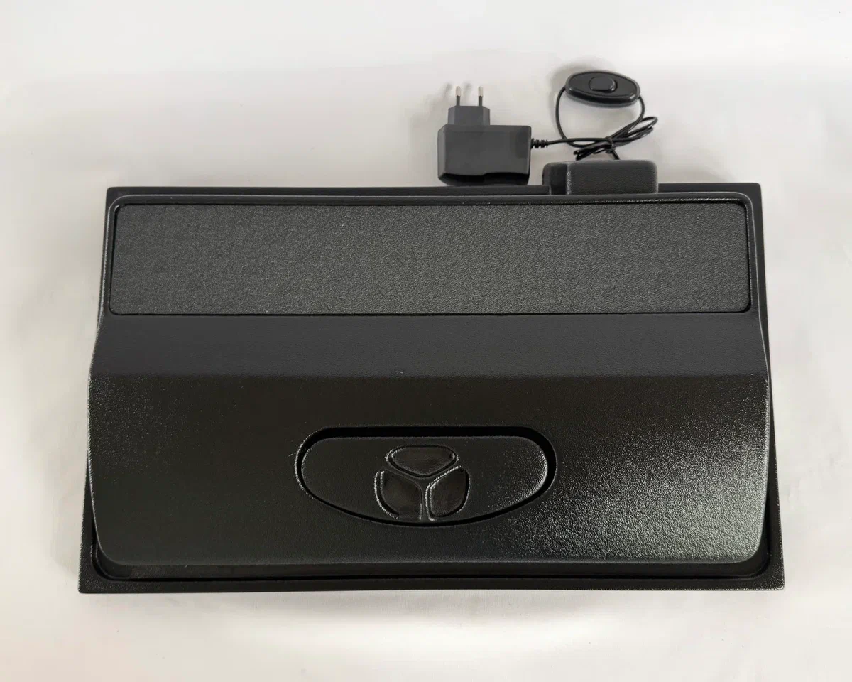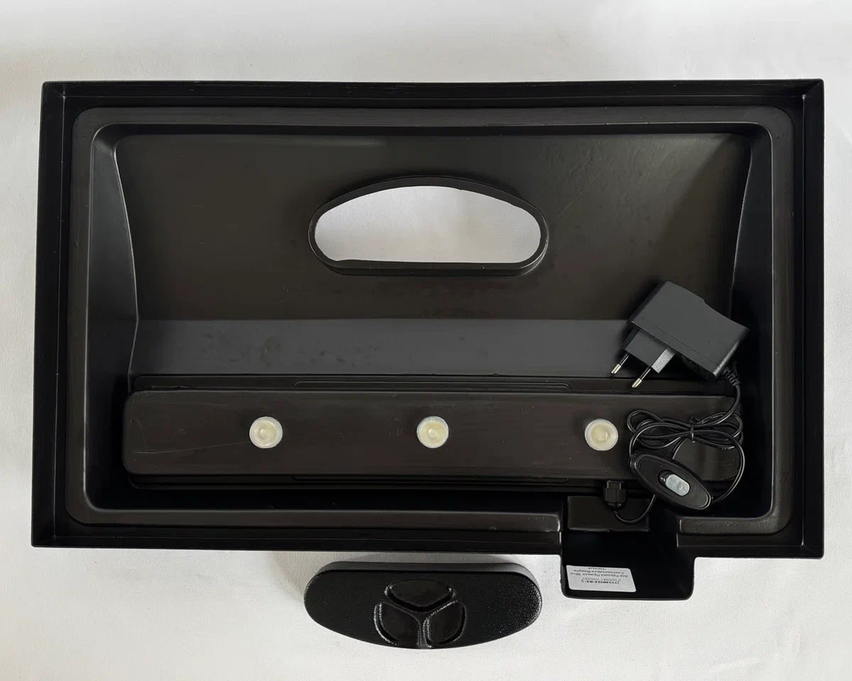 Модуль работает от понижающего блока питания 12 В, что обеспечивает безопасность при использовании в условиях высокой влажности. Он практически не нагревается, экономит электроэнергию и имеет длительный срок службы — до 50 000 часов. Шнур питания длиной около 1,5 метра позволяет удобно подключить крышку к розетке.