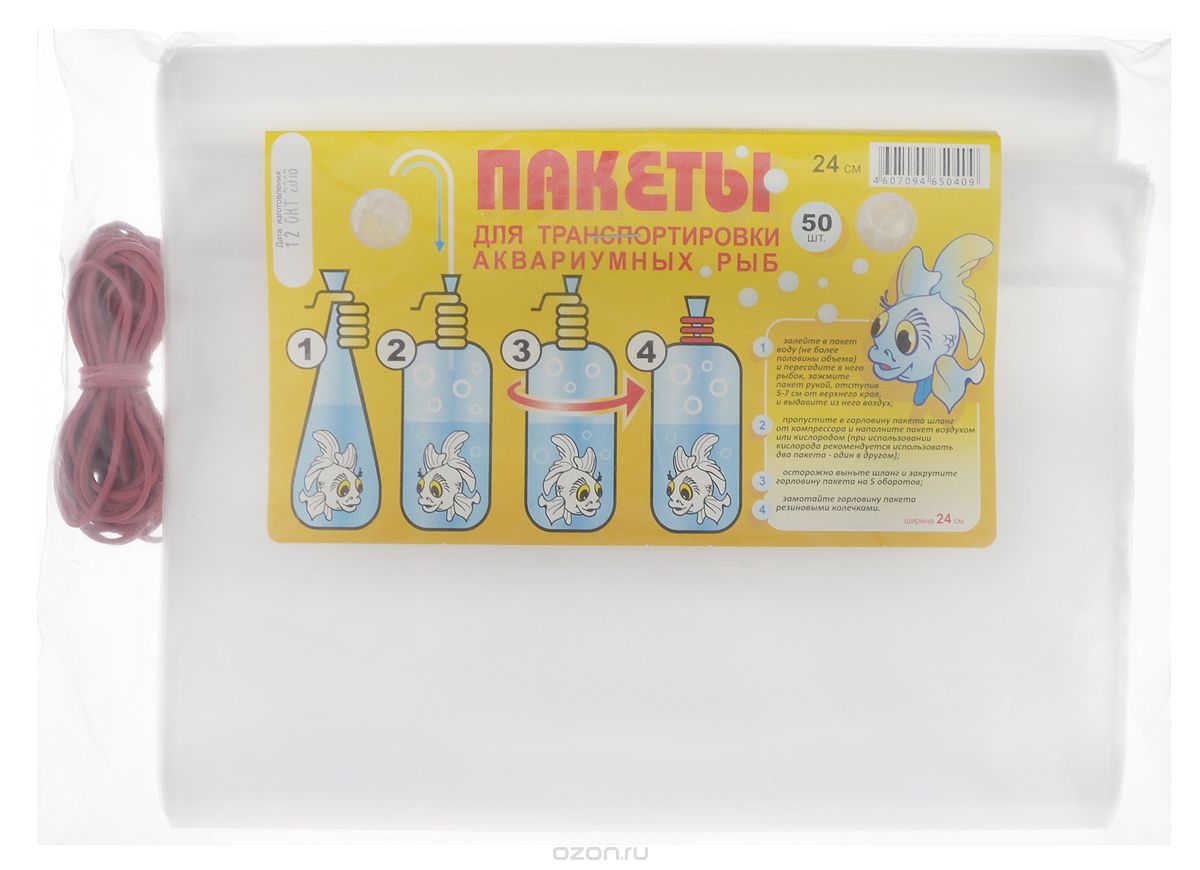 ПАКЕТ 50шт для рыб ширина 24см 6л + резиночки