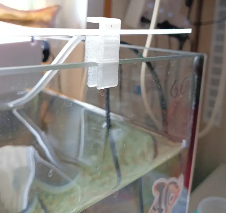 Фиксация покровного стекла для защиты от испарения воды и выпрыгивания рыб.