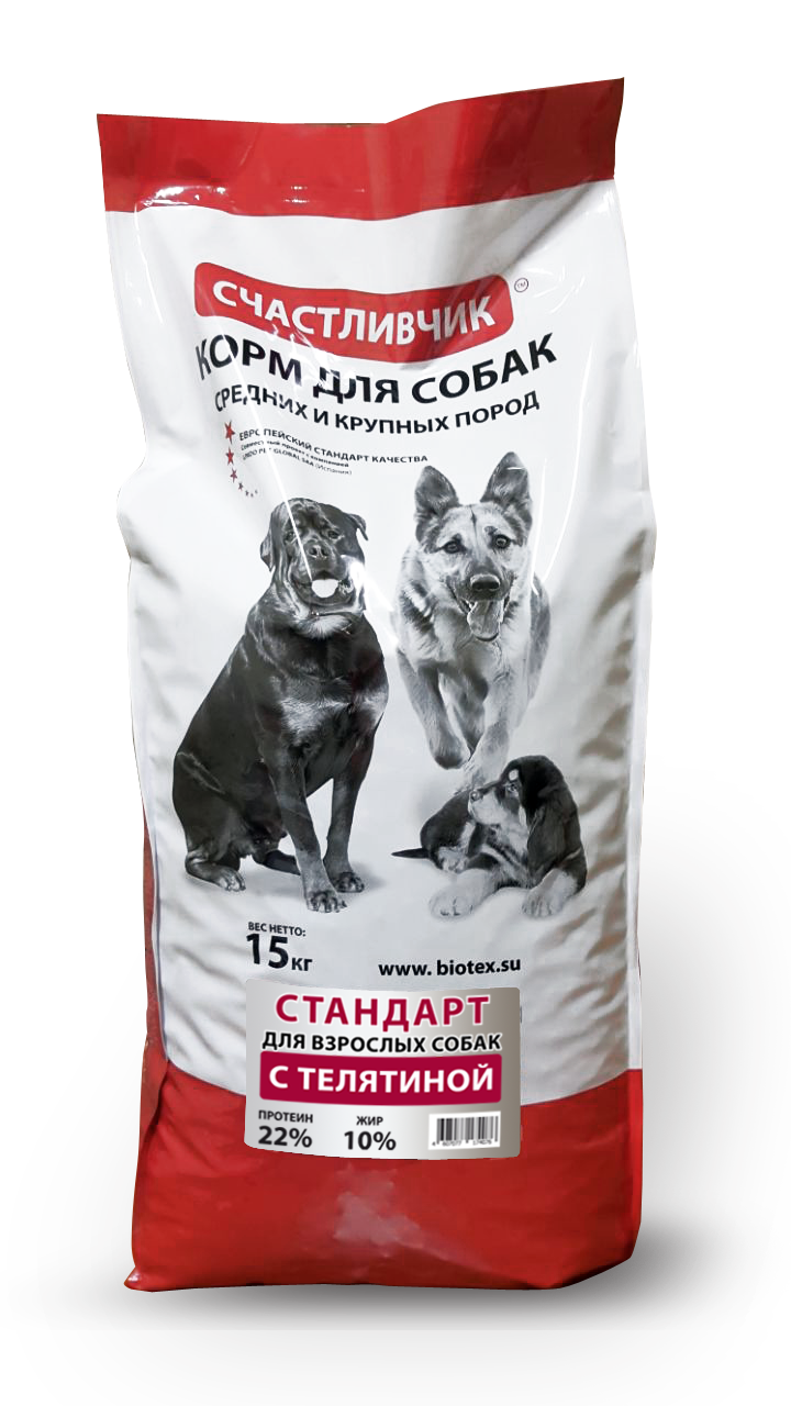 Счастливчик "Стандарт" с телятиной 15кг для собак