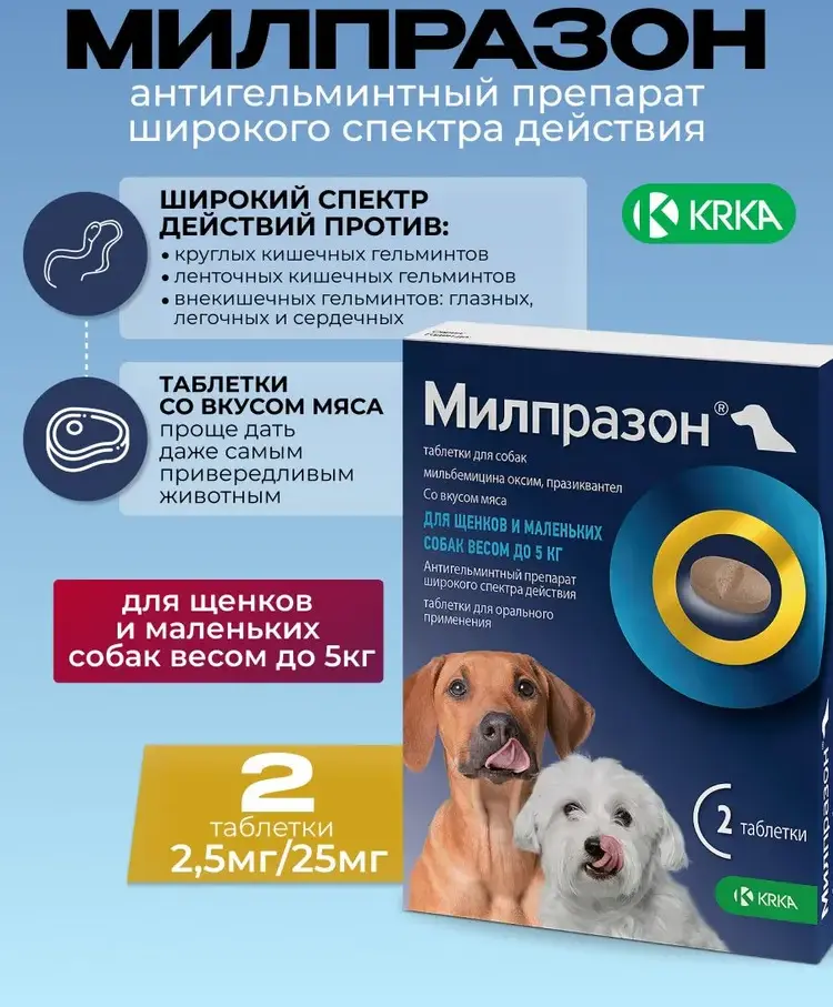 Милпразон для собак и щенков до 5кг (2 таблетки)