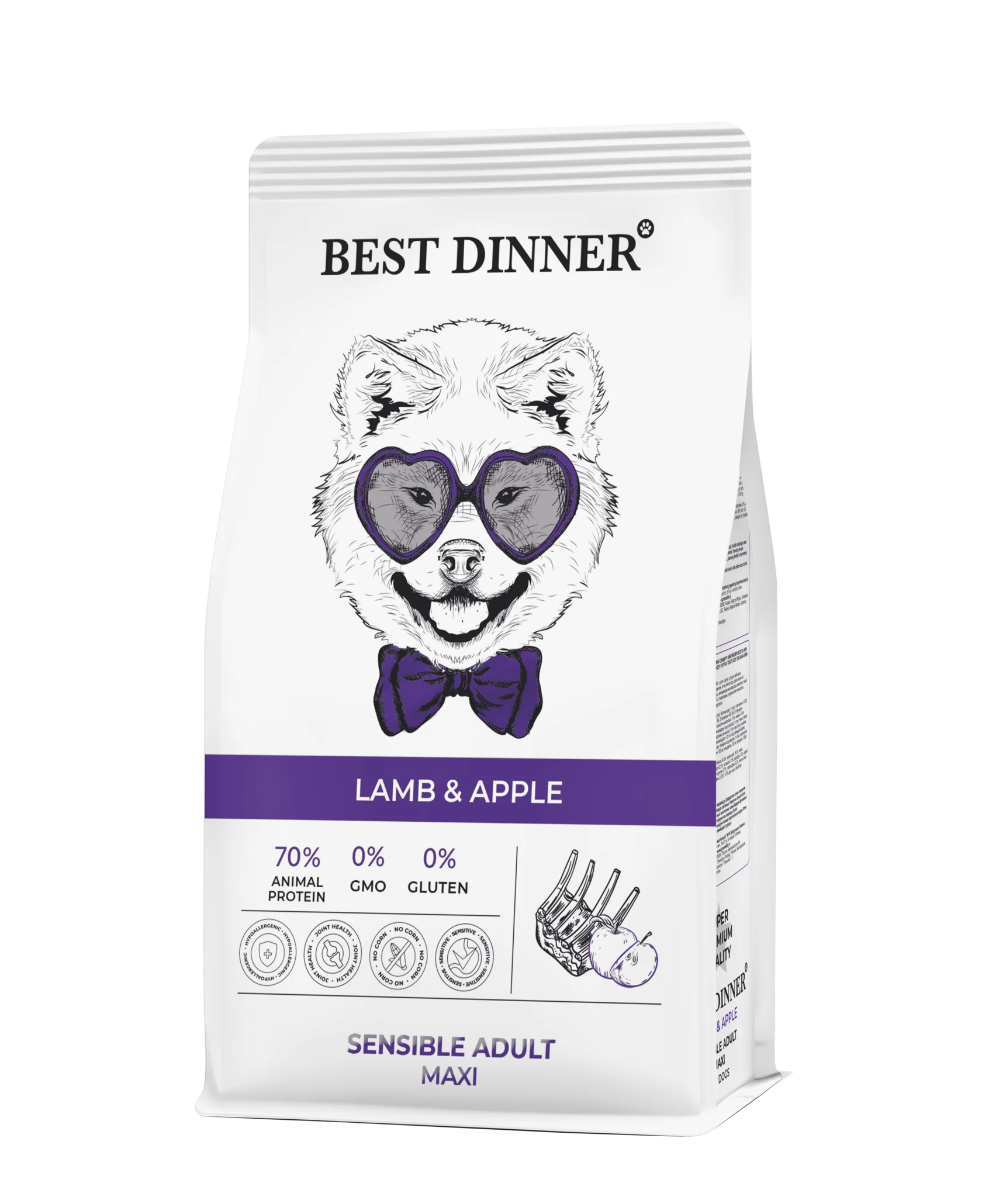 Best Dinner для собак крупных пород с ягнёнком и яблоком при аллергии и чувств.пищеварении 12кг