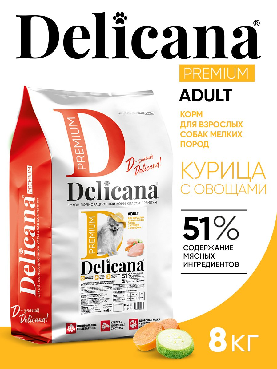 DELICANA Курица с овощами для собак мелких пород 8кг