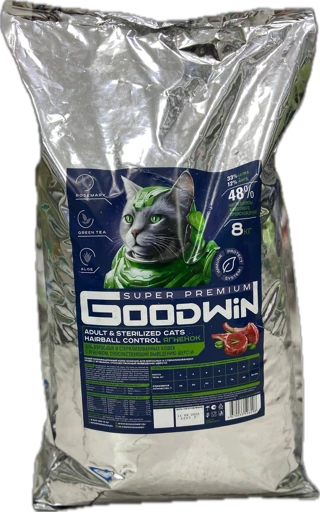 GOODWIN для стерил. кошек и кастр. котов, для вывода шерсти, с ягнёнком 8кг