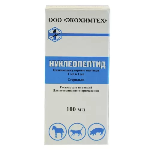 Биопрепарат Нуклеопептид представляет собой экстракт из селезенки крупного рогатого скота, содержащий пептиды, нуклеозиды, основания нуклеотидов и другие биологически активные соединения не менее 1 мг/мл.